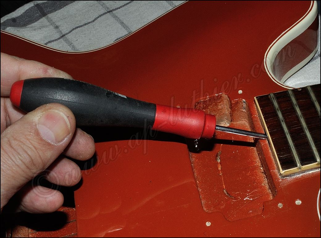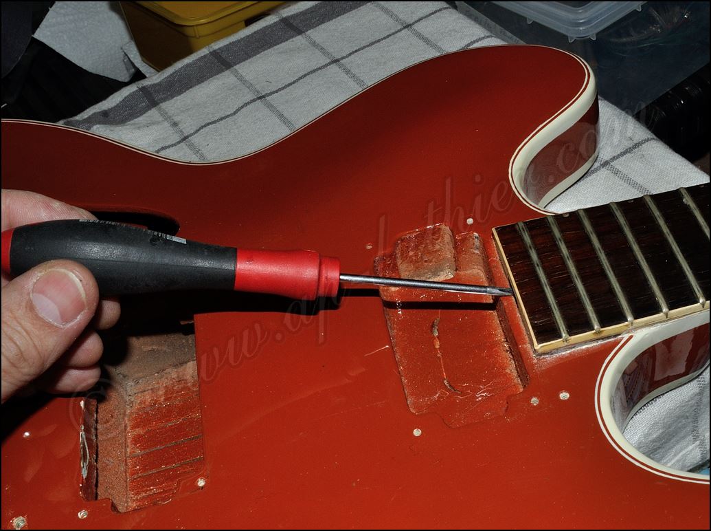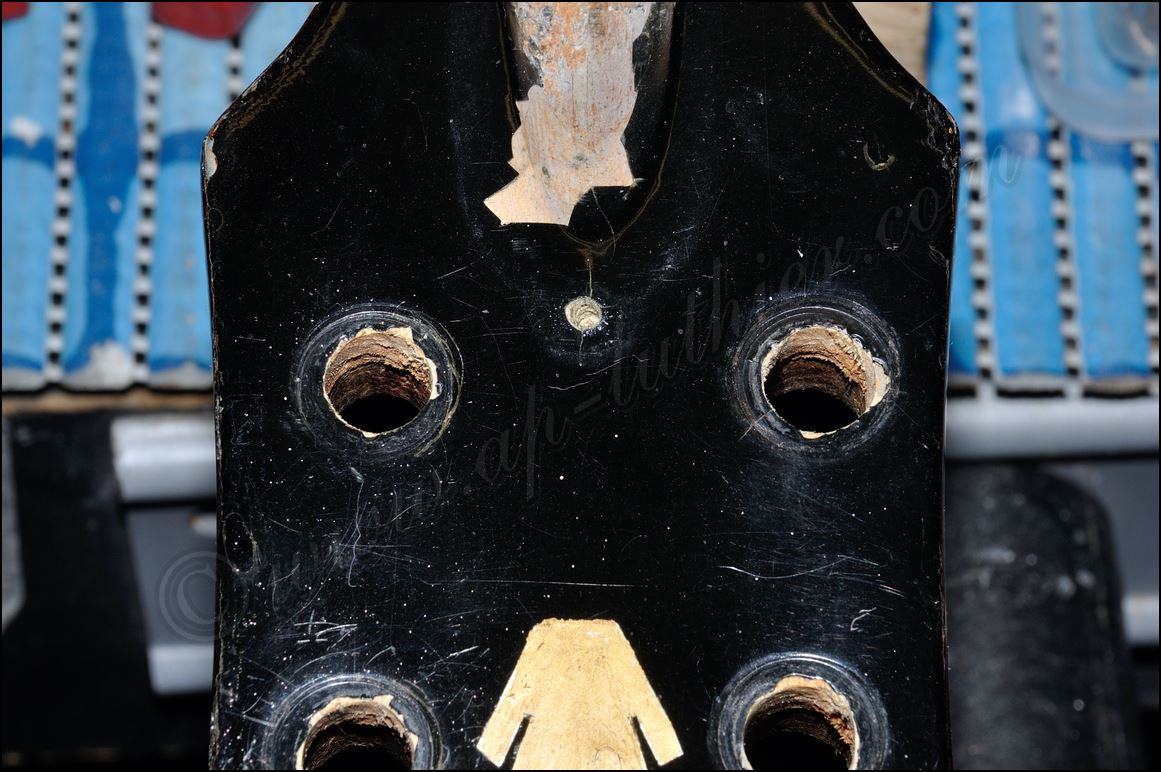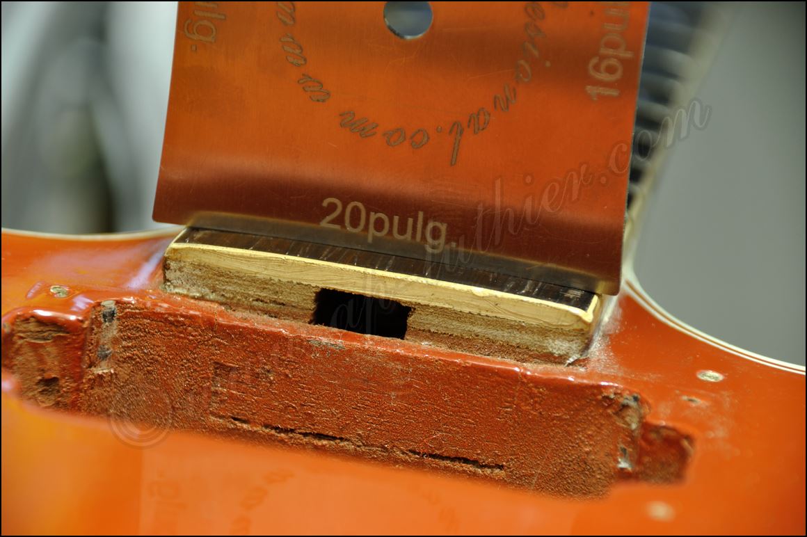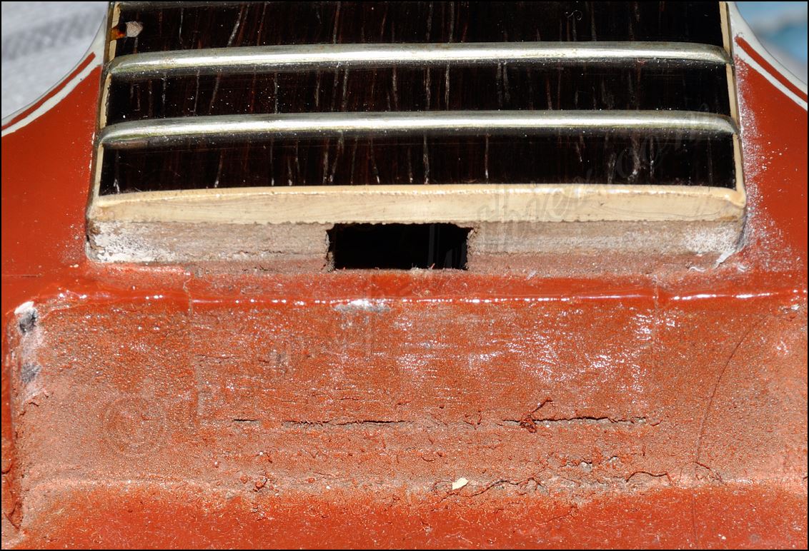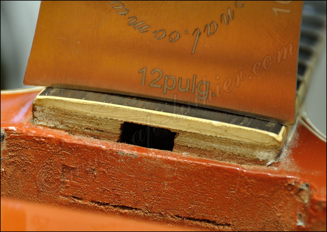 Desastre en una Gibson original ES-345 de 1961 Este bloque electrónico es el original, pero lo que no es original son las cintas de carrocero y esa goma en la parte trasera ![]() El porque está ahí. El metal está fatigado y rompiéndose. ![]() Aquí se ve mejor. Posteriormente lo arreglaré ![]() Esto es lo mas aberrante que he visto en una guitarra. Como es posible que una persona sea capaz de cortar un instrumento para hacerle semejante destrozo. Si no sabe como hacerlo, pues que delegue o aprenda, pero no se puede ir por la vida destrozando las cosas de los demás. Pero bueno... ![]() Fracturas producidas por la falta del pedazo que le cortaron ![]() Ni siquiera hizo un corte limpio y profesional si no una chapuza con un disco de corte. ![]() He aquí otra chapuza de campeonato. El alma descentrada y ese hueco que sabrá Dios para que se lo hicieron ![]() Como ven el destornillador entra ![]() bastante ![]() descentrado total de los orificios de los clavijeros ![]() al igual que una diferencia notable y asimétrica en la pala ![]() Aquí está la razón de los huecos en la parte trasera de la guitarra ![]() Al estar el puente doblado el que hizo el estropicio, no se le ocurrió otra cosa que lijar y lijar hasta poder poner a tocar la guitarra. El radio original de la guitarra desapareció y ahora es un radio compuesto de varios radios en la misma zona. ![]() ![]() Pues una vez visto lo visto me puse primero a hacer un diapasón para partir con la reconstrucción y darle otra vez el aspecto original al instrumento en la medida de lo posible. ![]() Listos los trapezoides para recibir a los inlays ![]() Probando las medidas ![]() Comparándolo con lo que queda del original ![]() De paso ya corté la nueva tapa con su logo y corona con las medidas originales. Ya se le ve otra cara con solo esos dos detalles jejejejeje ![]() Raspando a ver donde llegaba la pintura, encontré el binding original que el que pintó la guitarra no supo aprovechar. ![]() Pagina Anterior Pagina Siguiente |