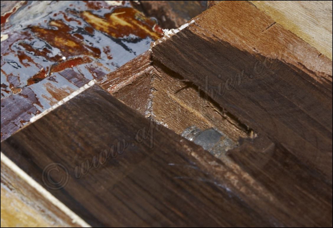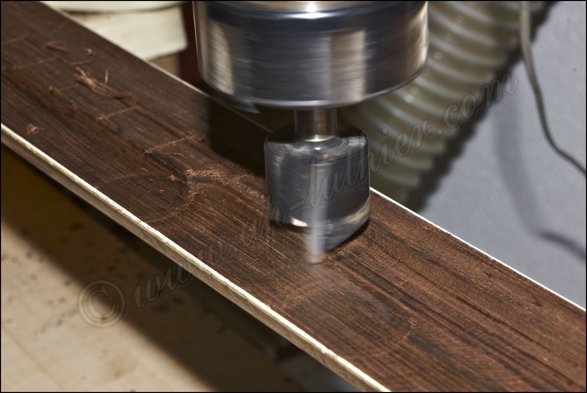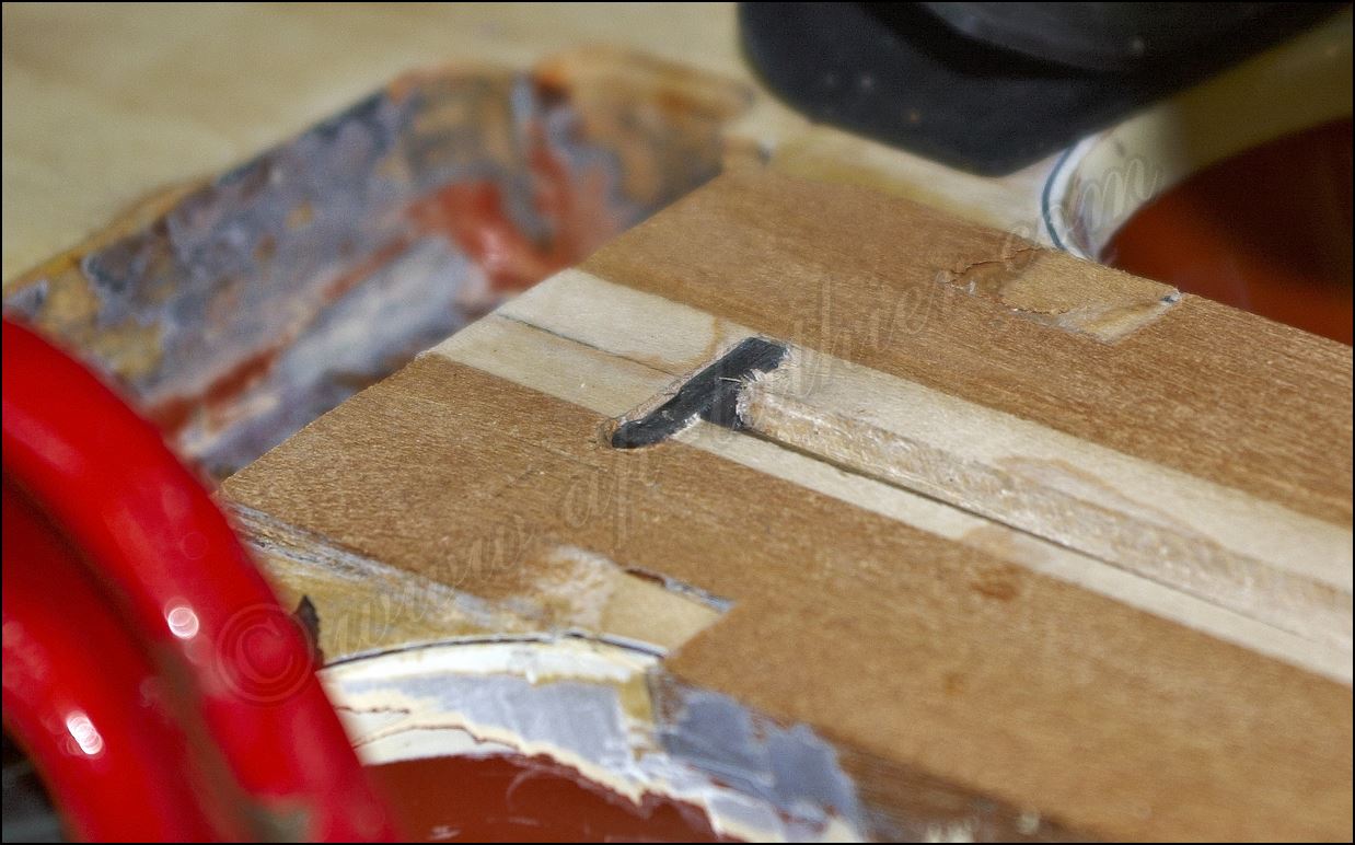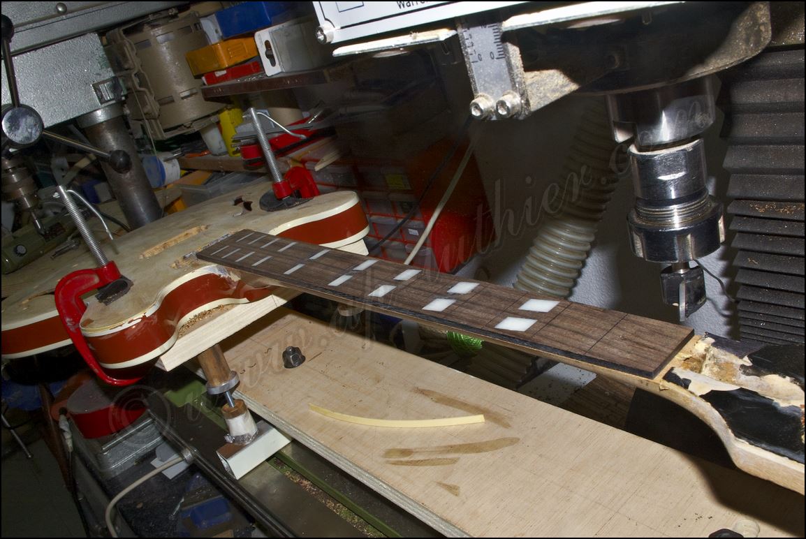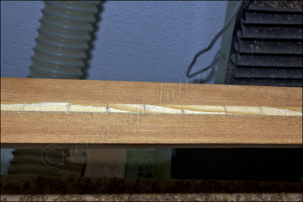 Desastre en una Gibson original ES-345 de 1961 Por fin acabé de despejar la tapa ![]() Ahora voy con las otras sorpresas a ver que ocultan. ![]() En la cejuela me encuentro un trozo de madera con un pegoste indescriptible ![]() Tanto costaría hacerle una cejuela nueva, en vez de entrampar la vieja que ni siquiera es la original. ![]() Detalle del alma. Lo descentrado y con fracturas en la madera que dan muy mala espina ![]() No queda mas remedio que eliminar el diapasón a ver que hay. intenté con calor como es lógico, pero se conoce que lo encoló con epoxi, y esto el calor no le hace nada. ![]() Aquí está otro error gravísimo. Esta alma no es funcional. Esto gira y no ajusta la guitarra, de ahí que tuviese que rebajar tanto el diapasón para llegar a no trastear o por lo menos trastear lo menos posible. Lo que no entiendo es para que le cambió el alma, si la rotura de la pala no tiene nada que ver. Eso se repara sin tocar el alma. En fin... ![]() Luego veo esa tablita que le colocó a mayores para tapar el estropicio del surco del alma ![]() Otro ángulo donde se puede ver lo irregular del surco. ![]() El alma la saque tirando de ella después ![]() de cortarle las tuercas que estaban gripadas en el eje. ![]() Termino de fresar y SORPRESA. En vez de un listón para el alma, le ha puesto trocitos de madera de pino de esa que hay en los pales de transporte. El madrileño la verdad es que no pega una. ![]() Aquí probando las medidas de como queda el nuevo diapasón ![]() Y aquí lo que tuve que rebajar para sanear toda la zona del alma y poder hacerla derecha ![]() Le puse una pieza de arce para compensar la debilidad de la otra madera. ![]() Centrada la guitarra, me dispongo a hacerle el surco del alma ![]() Listo y en su sitio como debe ser, y con la forma, aspecto y el ángulo original ![]() Igual atrás pero esta vez no hay problemas con que no ajuste. ![]() Como queda en el centro del mástil. Esta alma es de acero inoxidable, para evitar problemas mayores. ![]() Lista el alma con su tapa de caoba de Honduras. ![]() Página Anterior Página Siguiente |