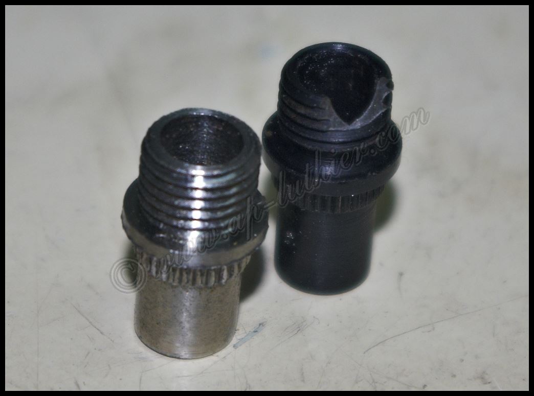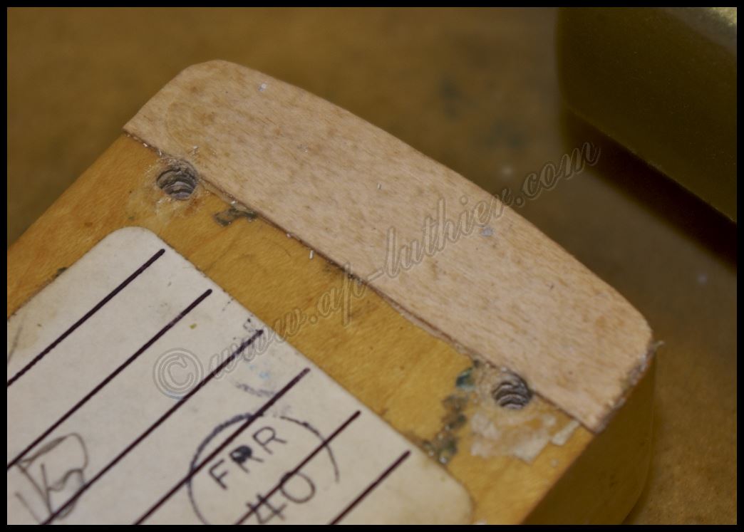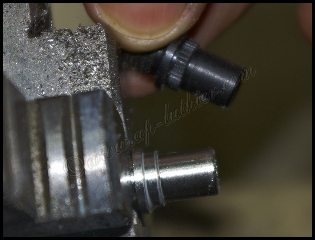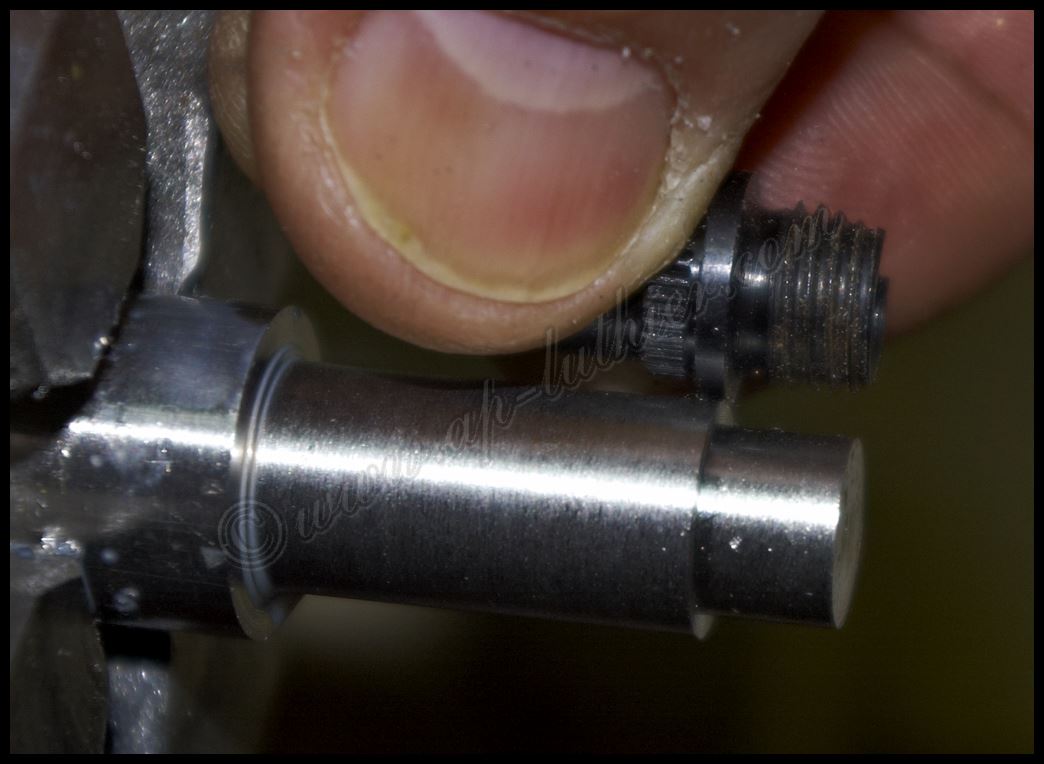 Errores de construcción Uno de los aspectos mas extraños que ocurren en la construcción de las guitarras, es el típico ahorro absurdo de unos céntimos en la construcción de instrumentos que luego repercute en el rendimiento de los mismos. Es increíble por ejemplo que Japón siendo un país que destaca por su electrónica y que los componentes comprados en grandes cantidades salen a precio de risa, le instalen a guitarra y bajos hechos en este pais, componentes eléctricos y electrónicos de tan baja calidad. Seguro que cualquiera pagaría 10 euros mas por cualquier instrumento, pero que le pongan componentes de calidad. Lamentablemente esto no solo ocurre con la electrónica, si no con otros muchos aspectos. Este apartado va a ser completamente dinámico ya que lo iré ampliando con defectos y ahorros absurdos, que en la práctica algunos no son tan absurdos, ya que lo que persiguen es que ciertos repuestos rompan cada cierto tiempo y así mantener una línea de venta de repuestos, que siempre será un ingreso constante para el fabricante. Otros sin embargo son errores de construcción, que lamentablemente a veces ocurren y que nadie es infalible en este aspecto. Si bien hay marcas de un prestigio enorme, pues algunos errores se han encontrado, aunque son una ínfima cantidad de ellos, sin embargo otros fabricantes es que ya no le ponen el mas mínimo cuidado y salga lo que salga tiran todo a la venta y el que protesta, se lo cambian por otro menos malo, pero al final siempre hay uno que se queda con el peor y gasta adicionalmente en dejar ese instrumento como debería de salir de la fábrica. La mayoría de los luthieres se limitan a cambiar el repuesto y listo, pero a otros nos gusta solucionar el problema definitivamente. Comenzando he aquí un Floyd Rose Original. Un puente con una fama extraordinaria, y de una construcción esmerada y precisa montada sobre una ESP de alta gama. Sin embargo sus piezas no son del todo adecuadas. Aquí está la pieza que recoge la palanca y en la cual se introduce para enroscar una tuerca externa o capuchón que sujeta la misma al puente. Pues bien por diversos motivos si esta tuerca no queda bien ajustada o se afloja con el uso, ocurre lo que se ve en la foto. Rompe por la acción de la palanca, ya que el material con la que esta construida no es lo mas indicado para aguantar uno o varios palancazos. Esta pieza se vende como repuesto y si bien no es cara, si lo es el envío, además de ser un incordio por inutilizar el puente y en algunos casos no poder extraer la tuerca, con lo que el daño sería mayor. ![]() En esta oportunidad se ha corrido con suerte y no ha ido mas allá de la rotura, ademas se puede ver que la acción del sudor de la mano está atacando otras zonas como el eje de una de las silletas, que ya se ve con restos de sulfato de cobre. ![]() Esta es la pieza ya extraída del puente. Es una pieza realizada en hierro colado, muy fácil de maquinar, pero se comporta como un cristal ya que no es elástica. ![]() Para que no vuelva a ocurrir, pues he decidido clonar la pieza en acero inoxidable que a parte de ser bastante duro, permite cierta elasticidad, acabando con este defecto en esta pieza. ![]() ![]() Con la preforma ya lista solo queda hacer lo mas difícil y es la rosca. Este aspecto también es una trampa de los fabricantes, ya que elaboran sus piezas con roscas no habituales, con lo que los equipos convencionales no pueden solucionar este problema, obligando al consumidor a comprar solo repuestos a los fabricantes. Si bien es un beneficio para el que lo fabrica, es un engorro para sustituir la pieza por otra mejor, a menos ![]() que se disponga de la herramienta adecuada. En este caso mi torno tiene una caja Norton con todos los pasos y medidas que se pueden hacer, y no representa mayor problema. ![]() He aqui la pieza terminada. Solo falta pulirla y quitar los restos del maquinado para dejar la pieza lista para montar. ![]() ![]() Y así queda montada en su sitio, sin desentonar y con la seguridad de que no ocurrirá un accidente similar ![]() ![]() Luego hay errores en la construcción del propio instrumento en si. Por cualquier motivo pueden ocurrir cosas o errores que se escapan y no por ello se puede juzgar a una marca. En este caso también de la casa ESP, pero en una gama mas baja, esta es una LTD EX, en la cual tiene instalado un puente híbrido entre un ABR-1 y un Tune-0-Matic. En mi opinión me parece un atraso poner un puente tan estrecho con poco margen en el recorrido de las silletas, y mas hoy en dia que la gente usa afinaciones extremas, y que limitan el quintado del instrumento. Si este puente tuviese un ancho como un Nashville tradicional, quizás se podría solventar el error por el margen mas amplio del recorrido de las silletas, pero si el puente de por si ya es estrecho, cualquier error o afinación por debajo de la habitual, ya no da para una buena afinación. Pero en este caso el problema va mas allá ya que el propio puente está mal colocado en el puente. Como se puede ver en las imágenes siguientes, a pesar de que está afinada en Mi, las silletas están al límite del puente, sobre todo el Mi y el Sol, impidiendo que estas quinten, y las otras apenas logran llegar. ![]() ![]() El problema es sencillo. No respetaron la escala. Se quedaron cortos por casi un centímetro. ![]() La solución para no hacer obra en el cuerpo de la guitarra, que representaría un gasto importante para dejarla sin que se notara, fue prepararle una pieza excéntrica para alojar el puente mas atrás y en su sitio. Lo mas difícil de esta pieza no es su elaboración si no el cálculo para hacerla, ya que había que hilar fino para poder quintar, pero sin desplazar demasiado con que quedase muy atrás y las cuerdas quedasen con un ángulo muy agudo con respeto al puente cordal. ![]() Otro cálculo es crear la rosca de tal forma que cuando ajuste quede atrás, bien ajustada y en su sitio. Aquí ya esta instalada y con su tuer