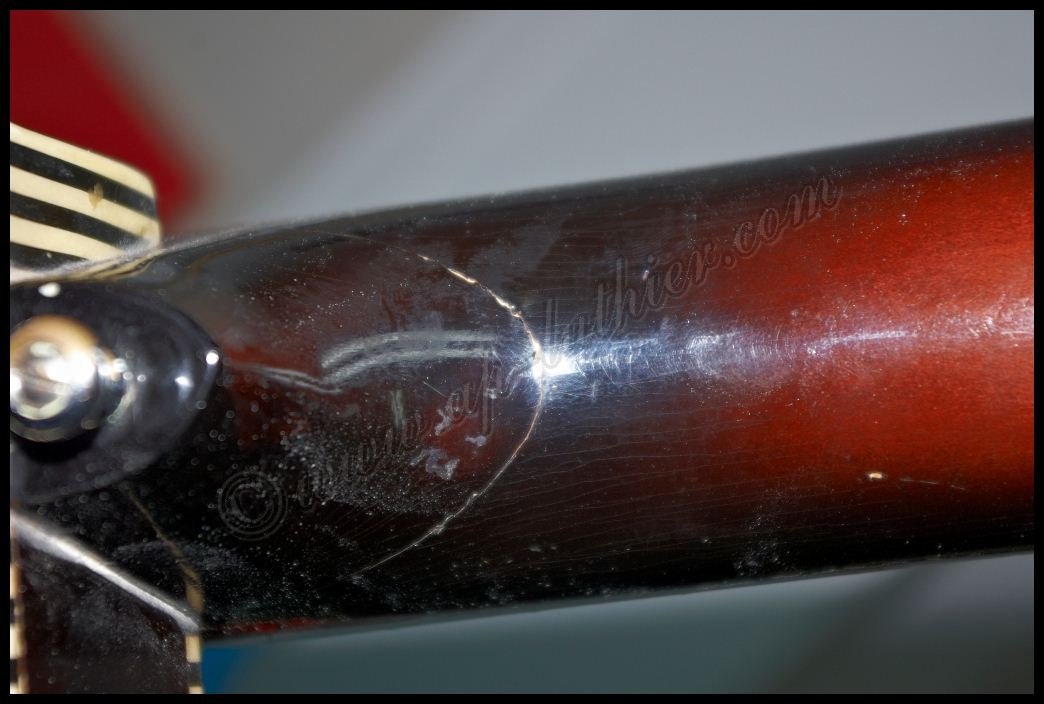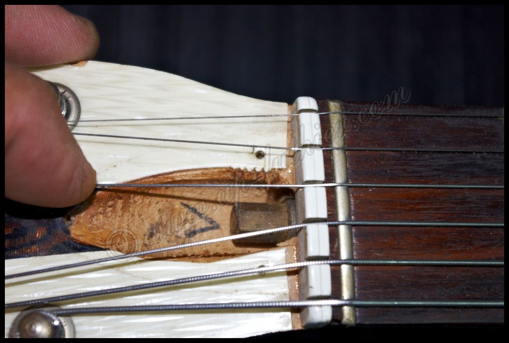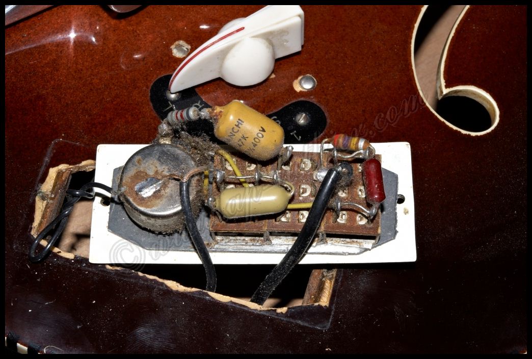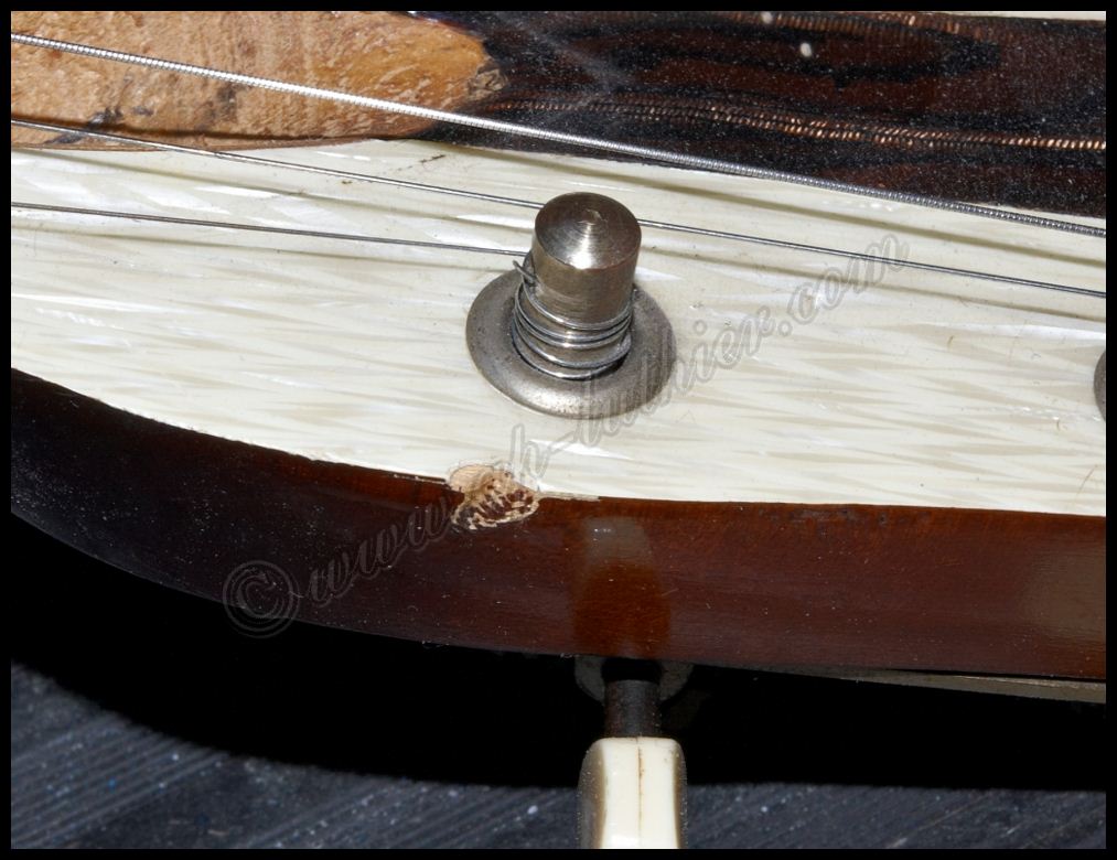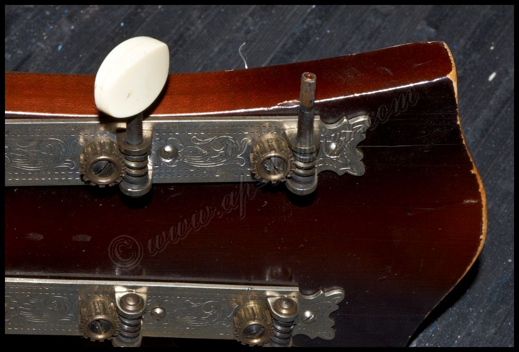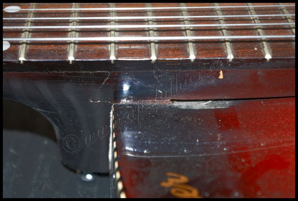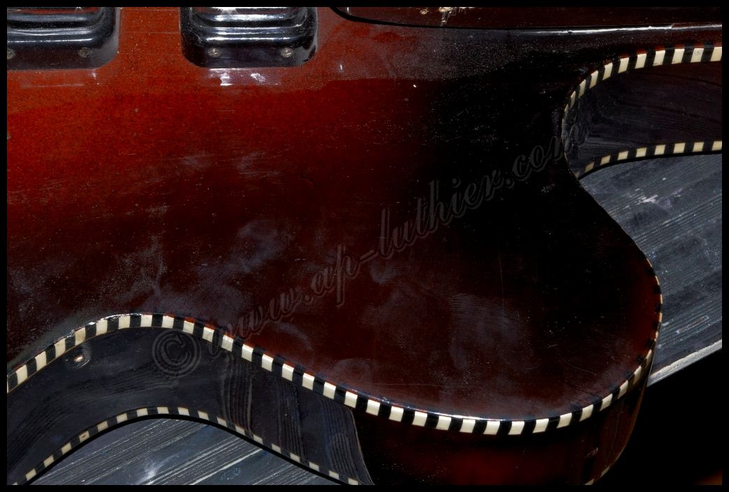 Reconstrucción de otra guitarra antigua marca Hofner Hola a todos, vengo de nuevo con otra reconstrucción bastante profunda en una guitarra. Esta vez se trata de otra Hofner, pero esta vez es electroacústica. La guitarra llegó bastante deteriorada tanto por el uso, como por la edad y por accidentes de uso. A su vez voy a aprovechar para ilustrar un poco mi trabajo, ya que muchas veces no nos damos de cuenta por desconocimiento, que aunque externamente se pueden ver algunas cosas, solo cuando se examina en profundidad un instrumento es que se descubren los verdaderos problemas, y a la hora de hacer un presupuesto, es imposible que uno pueda plasmar de forma preliminar, la realidad de lo que ocurre. Al comenzar a realizar el análisis preliminar fue evidente que había una rotura importante en el mástil ![]() Así como un desprendimiento de las piezas encoladas, debido al uso de colas que no perduran en el tiempo. ![]() Que trae como consecuencia que los distintos componentes encolados, cedan ante la tensión de las cuerdas ![]() Además las Hofner fueron diseñadas con muchas piezas encoladas, lo que hace que prácticamente se despiecen ![]() Por otra parte, las piezas de plástico de la época, estaban echas con compuestos que muy lentamente se evaporan, y con el transcurso de los años se van contrayendo poco a poco, con lo que se va descubriendo la madera que hay debajo. Pero esto tiene su encanto Vintage, y aunque parezca extraño le da valor al instrumento. ![]() El aspecto trasero del cuerpo, es un aspecto bastante normal por el uso, pero si se fijan bien, hay defectos que no son producto del tiempo, si no de una aplicación defectuosa del acabado. A simple vista se puede ver que el Binding casi no se nota, y que el acabado es bastante oscuro para ser una tapa de arce rizado. Esto tiene su razón pero se verá e porque un poco mas adelante ![]() Una foto con mas detalle, revela que la aplicación del acabado, no fue realizado de una forma profesional como nos tiene habituado esta marca. Esas marcas en forma de pecas, son producto de una aplicación con un instrumento mal graduado o con problemas. ![]() Continuando con el examen preliminar, poco a poco se va descubriendo que el mástil está en peor estado de lo que se esperaba. Lo que a simple vista parecían desconchones y grietas de la laca, al examinarlo mas de cerca, se aprecia que son roturas en la madera. ![]() En esta se puede apreciar que hay otro problema mas grave, y es que el mástil está parcialmente roto en la unión con el cuerpo ![]() Los clavijeros y la pala, presentan heridas normales en cualquier guitarra de esa edad ![]() Otro aspecto que llama la atención, es que los ejes del selector estén colocados directamente en la madera, sin una protección adecuada, y como es lógico, al accionar hacia un lado u otro, dichos ejes hacen que salte el esmalte alrededor de los mismos. ![]() Otro problema que se siente al accionar los interruptores, es que hay algo suelto en la placa, y no se pueden accionar con libertad. ![]() A nivel de pastillas todo parece normal, pero las pastillas no responden, cosa que aun no se puede decir nada ya que hay que desmontarlas, y examinarlas independientemente desconectadas de la electrónica. ![]() En esta foto se puede apreciar lo mismo que en la parte de atras. Hay exceso de laca, y esta inexplicablemente tapa el binding ![]() Los cromados están opacos por el paso del tiempo ![]() En esta toma se puede apreciar que el mástil casi toca el cuerpo, corroborando la sospecha de rotura parcial del mástil, además de algunas heridas del golpeador ![]() Aquí se puede ver, que el puente está en muy mal estado, y algo sorprendente, y es que hasta el binding de las efes está pintado por encima con el acabado del cuerpo. Esto le quita belleza y se entrevé que hay algo mas que ocurre, pero que está oculto. ![]() Otro detalle del puente, que obedece únicamente a la apariencia mas no a la funcionalidad de la pieza. ![]() En esta toma se aprecia desde el otro lado como la tapa armónica está aguantando toda la tensión de las cuerdas. Esto es muy peligroso, ya que ha podido tener consecuencias nefastas para el instrumento. Por suerte se pilló a tiempo. ![]() La electrónica bastante deteriorada por el uso, necesita una reconstrucción urgente. Por otra parte tambien se puede apreciar como aplicaron la laca encima del binding de la efe derecha ![]() Pagina siguiente |