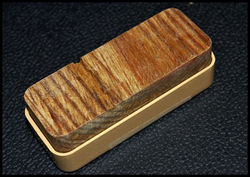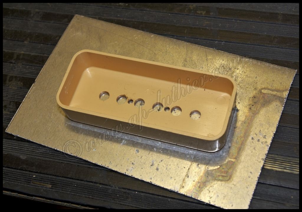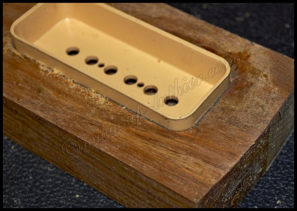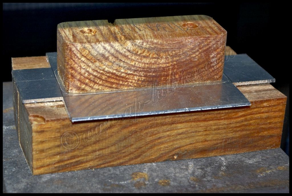 Old Black Neil Young Réplica Bien pues continuo ahora que ya tengo el ruteado de la pastilla del mástil con el acabado, y tengo las medidas exactas de la cavidad, pues hago la última pieza de aluminio que me faltaba para completar el Kit en este metal de la Old Black. La pastilla del mástil, originalmente trae una cubierta de plástico, la que fue sustituida por una cubierta de aluminio, para no desentonar con el resto de los herrajes. Recorto un trozo de las dimensiones necesarias de una lámina de este metal que me permita hacer la carcaza. ![]() Para este proceso, si fuese para hacer muchas piezas, construiría una matriz para embutir el aluminio, pero para hacer una sola, mejor simplifico el proceso y hago un poco de trampa, que de todos modos la original fue hecha haciendo algo parecido. Selecciono una madera muy pero muy dura. Tanto que los clavos no la penetran y freso primero un molde de la cavidad interna de la cubierta de la pastilla ![]() Como pueden ver esta está perfectamente cortada con las dimensiones exactas de la parte interna. ![]() En la siguiente toma pueden ver lo que sería la pieza ariete o macho para embutir ![]() Luego mido el radio de la parte externa que son 8mm. y ![]() Monto una fresa correspondiente para dicho radio y a su vez preparo la cavidad o hembra para embutir el aluminio en ella y le transfiera su forma. ![]() Como pueden observar la pieza original de plástico encaja a la centésima ![]() Una vez hechas las dos piezas de madera, corto la lámina de aluminio para ayudar a darle forma. Si hiciese la matriz en acero, no haría falta cortar las esquinas, y si tuviese una prensa de 300 toneladas ni siquiera haría falta una lámina, si no que con solo la presión se moldearía la carcaza, y es el procedimiento habitual en una industria que las produzca a gran escala. Pero este no es el caso y solo dispongo de una prensa pequeña de 5 toneladas, con lo que es suficiente con este procedimiento. ![]() Poco a poco el aluminio se va embutiendo dentro del molde y ![]() Al terminar obtengo la preforma que buscaba. Con ella tengo el punto de partida para hacer la cubierta de la pastilla. ![]() Antes de trabajar compruebo que la pastilla se introduce sin problemas dentro de la cavidad y ![]() Le hago manualmente los orificios para los tornillos de las piezas polares ![]() Cortada a la altura correspondiente y ![]() comprobando que todo caza bien ![]() ![]() pulo un poco la pieza, ya que al ser tan usada no necesito dejarla como un espejo puesto que aun tengo que envejecerla. ![]() Aquí ya con el proceso de envejecimiento ![]() Algunos se preguntarán porque le he quitado un pedazo al cubre pastillas si todo encajaba a la perfección, pues como estoy haciendo una réplica tengo que copiar hasta los errores, y si se fijan en la pastilla original, en la cubierta le falta este pedazo. Me imagino que el que la construyó en aquella oportunidad no estuvo muy fino y tuvo que improvisar para que la pastilla entrase sin problemas, tuvo que cortarla del lado del golpeador para que se notara menos, debido a que le salió un poco mas pequeña. Esto es una conjetura personal, ya que no he encontrado ninguna explicación al respecto. ![]() Algunos me han comentado si también va el estuche a juego, y ya estoy en ello ![]() ![]() Aquí totalmente listo para pintarle los letreros ![]() Página anterior Página Siguiente |