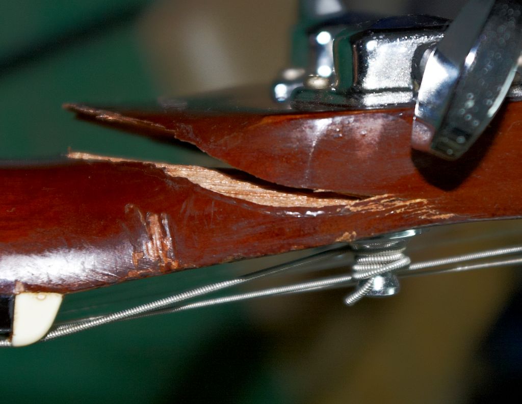 Esta guitarra es un ejemplo típico de este tipo de accidentes, en el