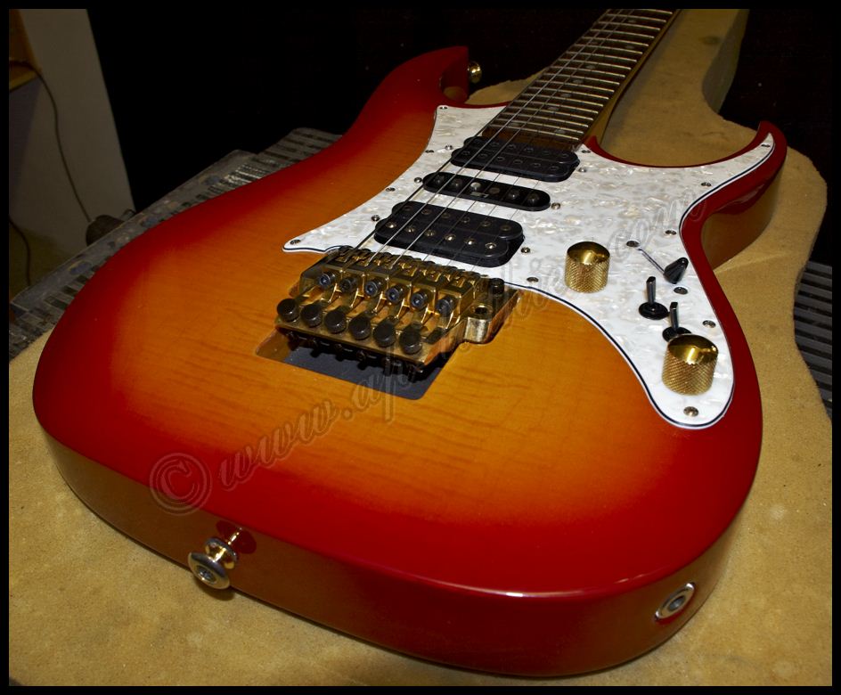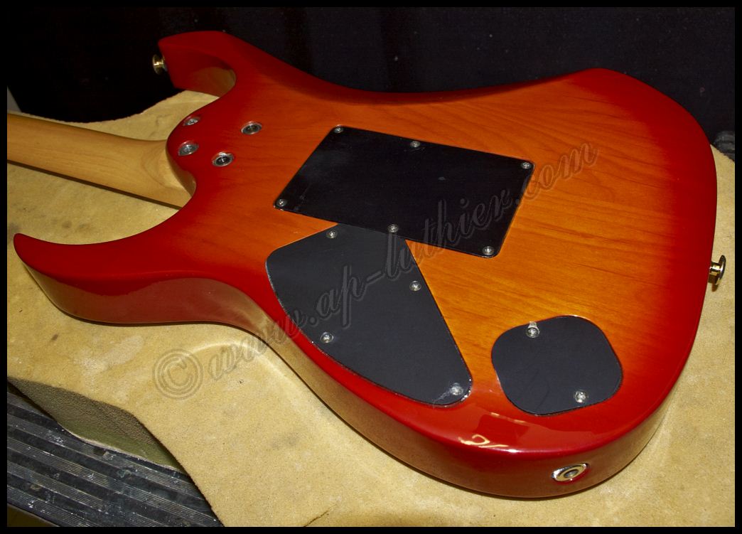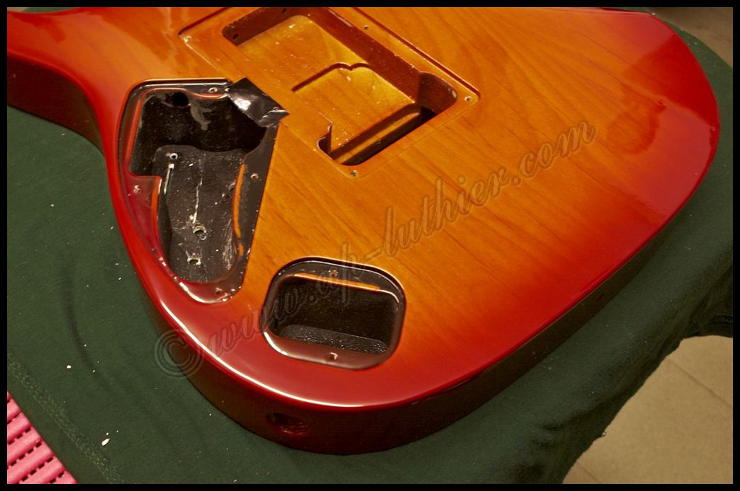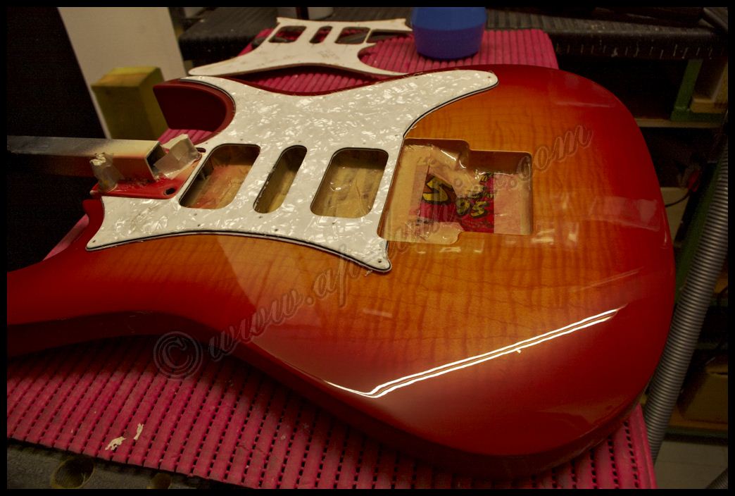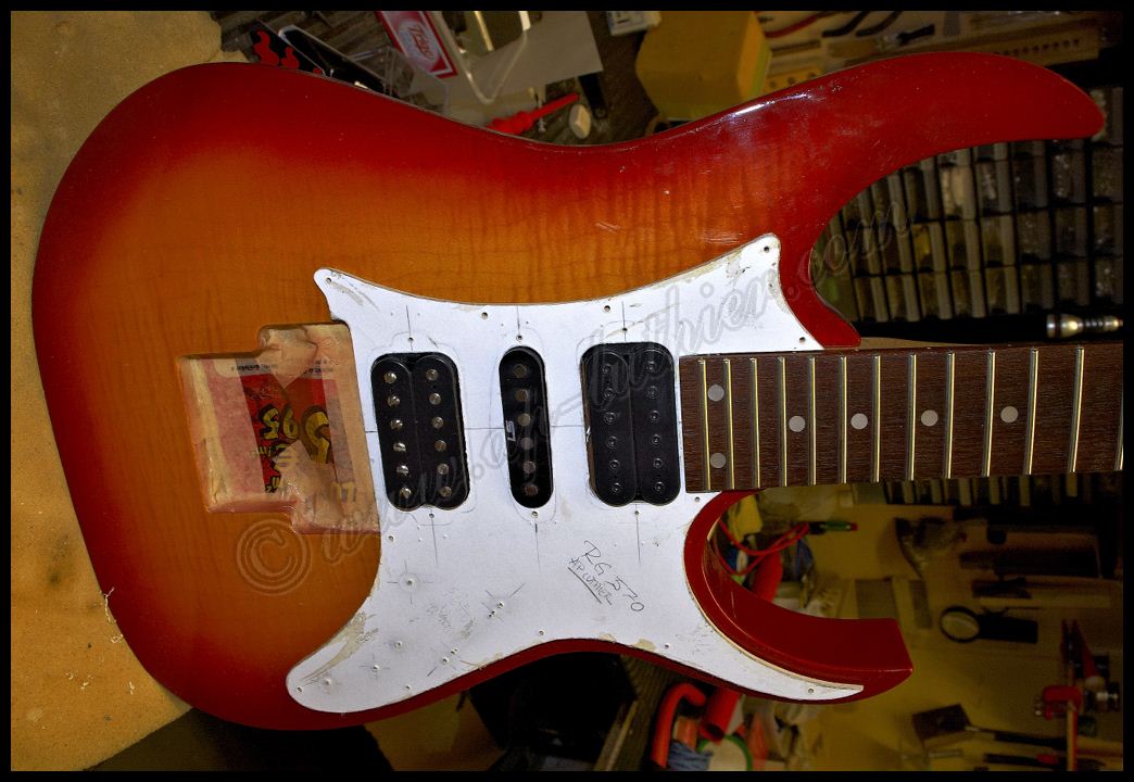 Conversión de una Ibanez RG 570 Ni rastro de los golpes y esta combinación de colores, le da a la guitarra una nueva vida ![]() Las mejoras no solo se efectuaron a nivel del cuerpo y mástil, si no que la electrónica también fue personalizada con lo que son para mi las mejores pickups para este modelo. Yo poseo el mismo modelo desde hace muchos años y experimentando he llegado a la conclusión de que las pastillas Dimarzio PafPro para el mástil y la Tone Zone para el puente, son las ideales para este instrumento. La pastilla central, es bastante buena y por eso recomiendo dejarla. Aquí ya se puede ver con el diseño del golpeador y sus pastillas. ![]() Con todo en marcha pues ahora viene el acabado final ![]() Pulido ![]() Y lista para armarla de nuevo ![]() ![]() ![]() Al ser los cables de las pastillas mas gruesos tuve que hacer un canal para introducir los mismos. ![]() Y aquí probando y cuadrando en su sitio los elementos con su nuevo look ![]() y aquí ya terminé de montarla. Como pueden observar le he montado dos micro switches ON-ON-ON. Esto casi siempre que me lo permiten se lo hago a este tipo de guitarras. Da una versatilidad excelente y se obtienen 13 sonidos dándole muchas posibilidades al instrumento, ya que se pueden variar las humbuckers dependiendo de la posición en serie que es el sonido normal, coil tap que sería convertirla en sencilla y así tenemos los sonídos típicos de la Strato, y en paralelo. Este último permite usar esos sonidos tipo vintage de las guitarras añejas. ![]() También le he montado el sistema del TremoloSi, con lo que la guitarra ya queda completa. ![]() ![]() ![]() ![]() ![]() ![]() Y al final teneis el vídeo con su feliz dueño y observen y sobre todo oigan la diferencia en sonido, sustain y resonancia de la guitarra Un saludo a Todo@s Pagina anterior |